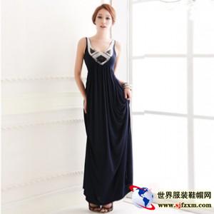 春季新款韩版奢华亮片点缀大U领长款洋装礼服连衣裙W60049