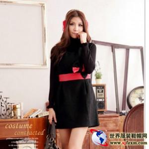 红色腰带装饰,黑红完美结合出蝴蝶结更是平添了许多