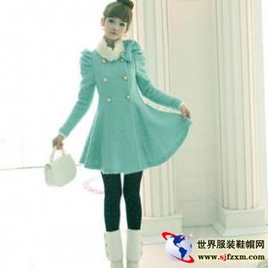【商品名称】:2011韩依依新款H85122韩板时尚双排金属扣毛昵大衣