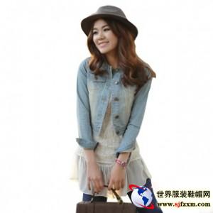 韩依依A1560时尚个性圆领长袖修身牛仔外套