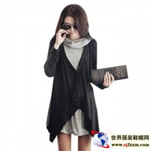 韩依依秋装A1543时尚百搭不规则前襟深V领斜扣长袖透气开衫