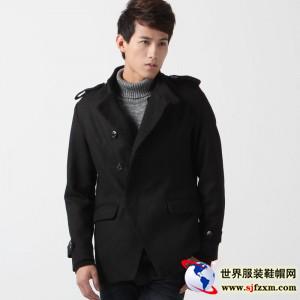 GENANX 新款 韩版修身时尚毛呢子风衣 男 外套 黑色 含羊毛F015-1