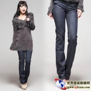 秋冬装2011 新款韩版女装纯色显瘦OL通勤直筒牛仔长裤