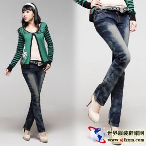 秋冬装2011 新款韩版女装桃心钉珠显瘦微弹直筒牛仔长裤