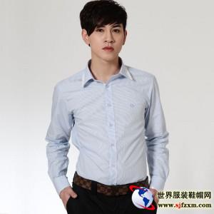 比朗 舒适商务休闲蓝色条纹提花衬衫