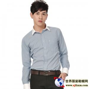 比朗 男士商务新款修身韩版衬衫蓝色细条纹