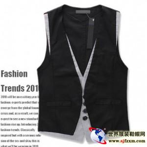 韩版个性修身 条纹装饰假两件开袋西装马甲 P45