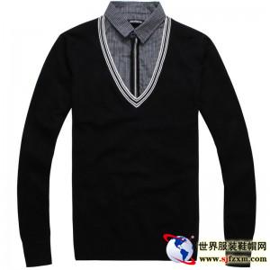 GENANX 秋冬季英伦学院风 男士修身针织衫毛衣 假两件 B019-1黑色