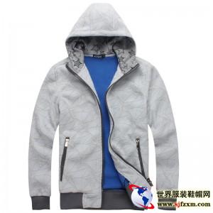格男仕 秋冬新款连帽卫衣修身 男装 外套 W003-4 浅灰色