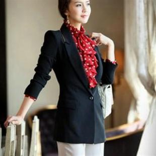 【商品描述】:采用经典的一粒扣版型,耸肩的设计,中性干练味十足帅气洒脱;考究的分割线设计具有很好的修身效果;采用翻驳领的设计;中长修身的款式必然让你魅力倍增,一款百搭而且可以适应多种场合的实用西装,可搭配各种裤装,打造完美都市丽人。
