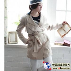 【商品描述】:简洁身形的翻驳领它诠释了美丽与温暖的统一,独特的设计剪裁,相信一定会带给你一个美好的开始。杏色风衣领部的不对称设计,穿出秋天的时尚感,却不显臃肿,配上一条腰带,更加优雅。中长的款式很百搭,铅笔裤与细跟鞋的组合就十分完美