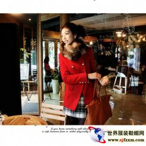 HJ6025 淑女双排扣 公主袖立领 毛呢修身外套