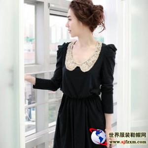 HJ1075最新韩版蕾丝贴领优雅淑女长袖连衣裙